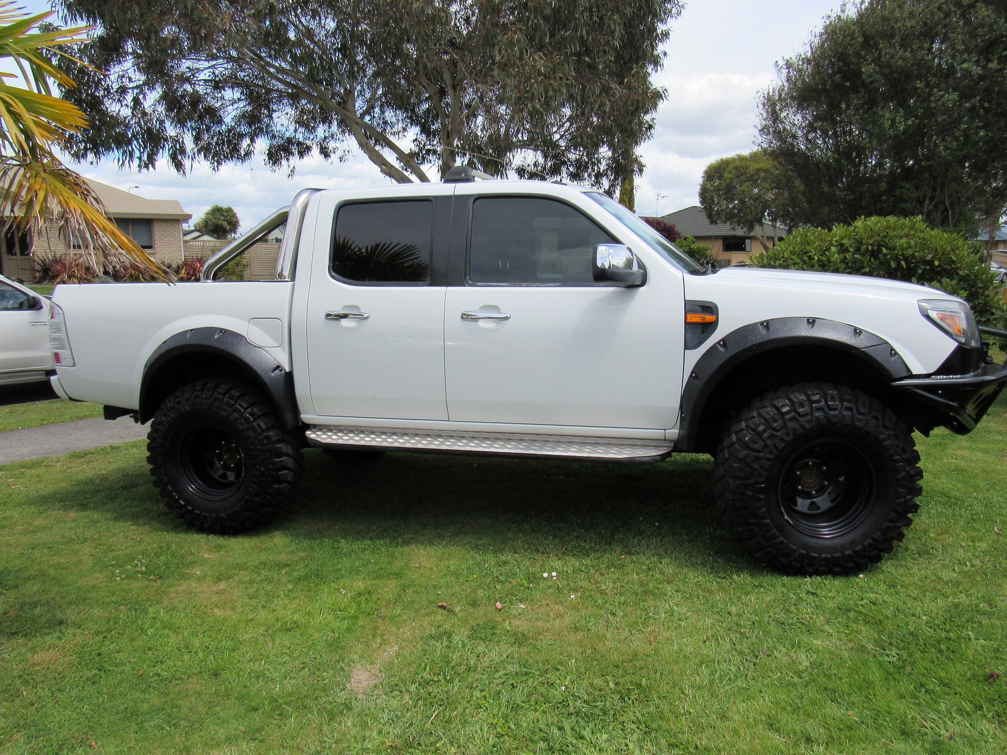 thanks for the feed back. I am a fabricator so have the barwork sorted. fitted 2"lift blocks last nyt and it does look quite tall now. went for a ride in a 2013 ranger tonite that has my new wheels on it. road noise surprisingly quite! dumbie fitted wheels on my truck, rubs front and rear of front ...