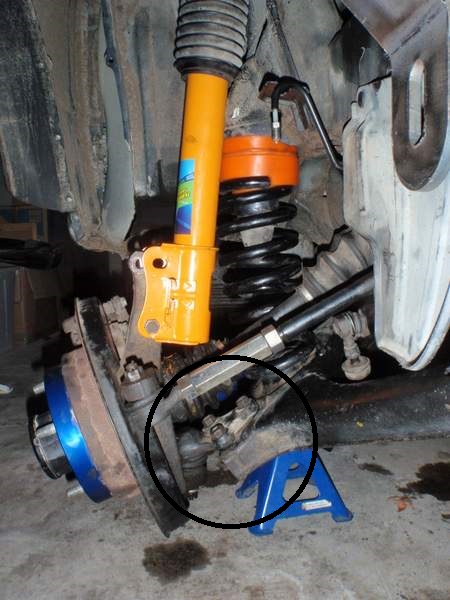 In this pic the ball joint is bolted to the top of the arm. Mine are bolted to the bottom of the arm.