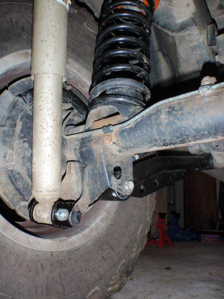 This shot just shows the FTS shock repositioners. Can't be seen in this shot, but they are also held by the pin that holds the rear control arms in addition to the original shock mount holes.