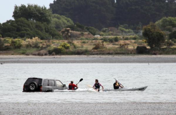 It appeared the driver entered the estuary at low tide via the Mt Pleasant Yacht Club on Main Road.