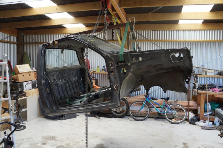 The terrano was in one piece on saturday morning, and the cab was hanging from my shed roof at 3.30 this arvo. If we didnt have visitors I would probably have it finished.