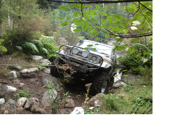 I ended up at the back when we got to the waterfall and my wife had a sleep in the Pajero while we rebuilt the bank. It is at the waterfall where the highest potential for damage is with a tree stump on the left side when heading towards the grey.