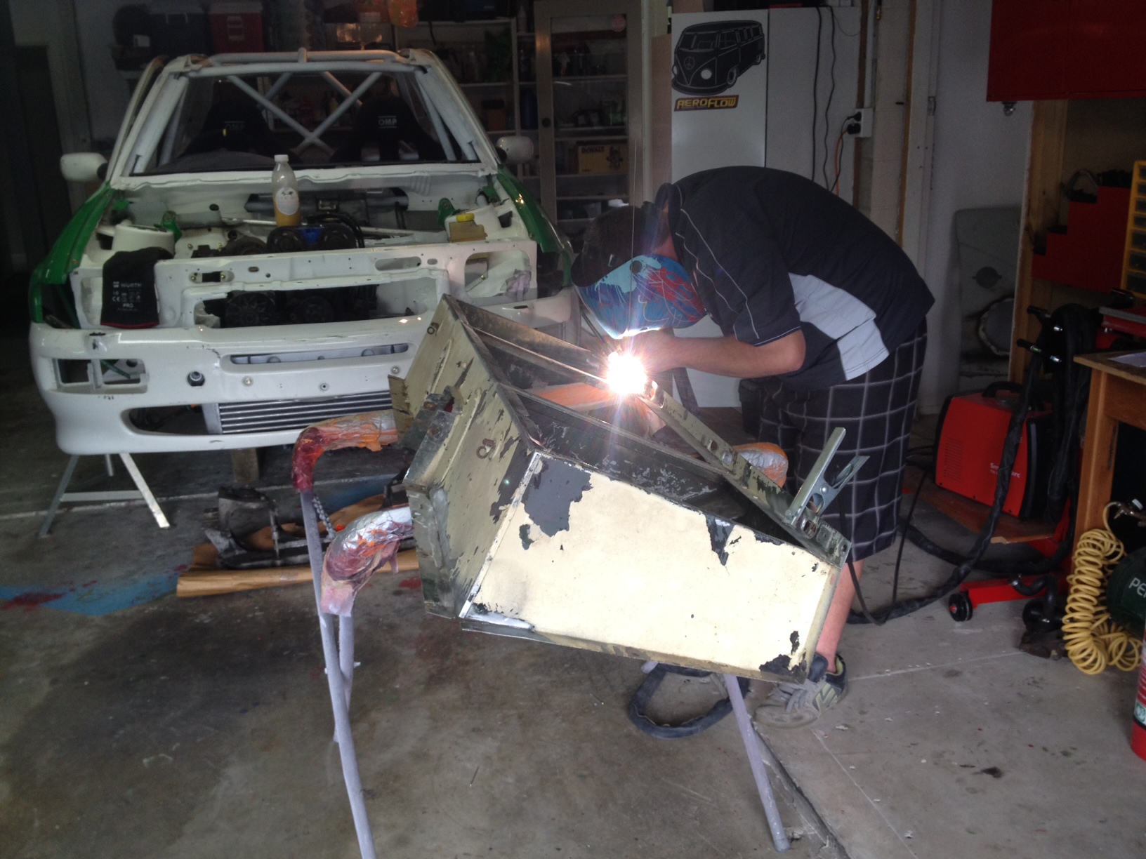Decided too have a crack at fixing the seat box. Roped Daniel in to try some alloy tig welding on it :mrgreen: :mrgreen: