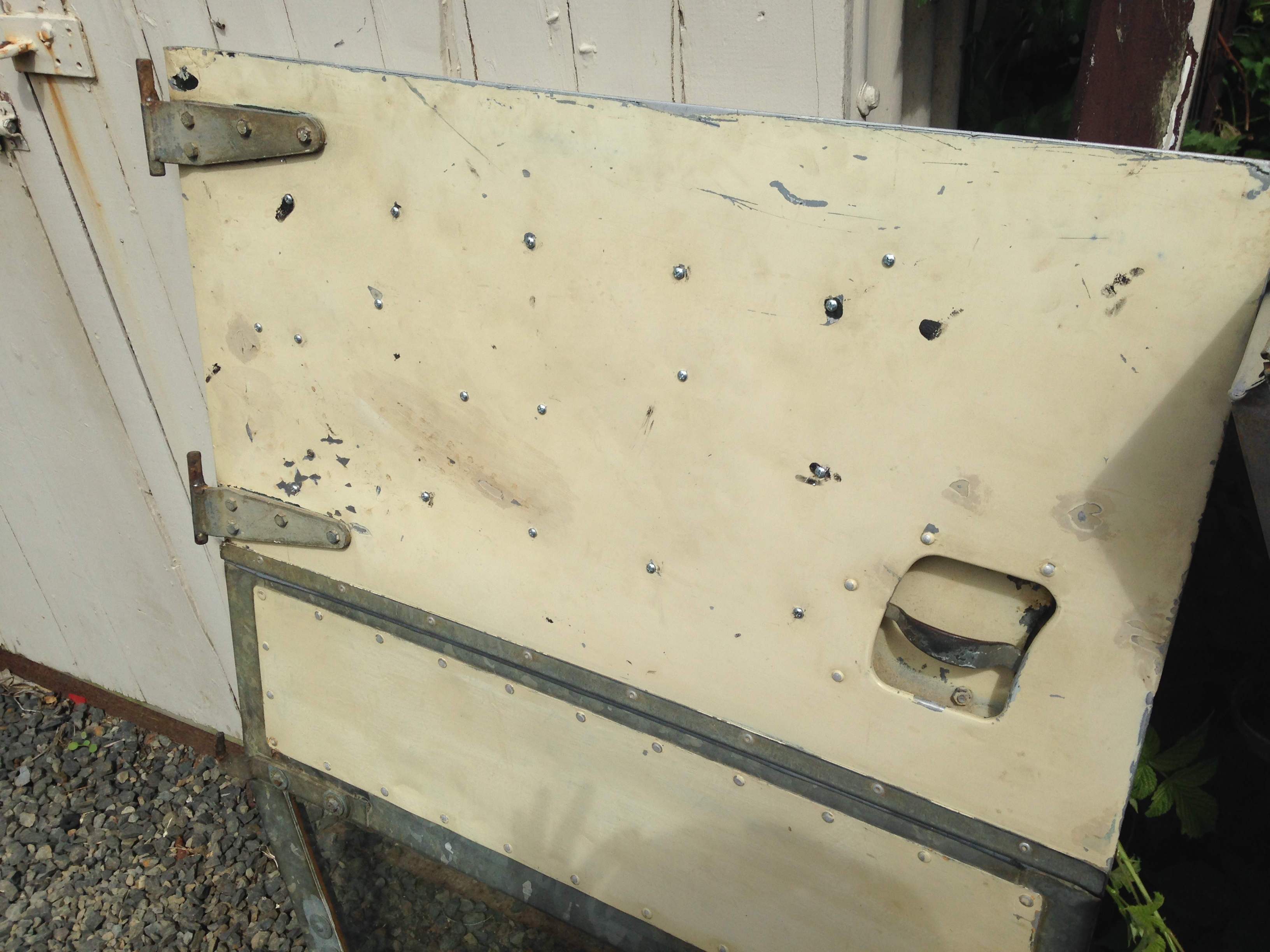 In this case you see both sides of the door skin, so rivets weren't ideal. Tried self tapping screws as an experiment and seems to have worked out ok, the screws came out tonight and the plate stayed tight to the door skin :)