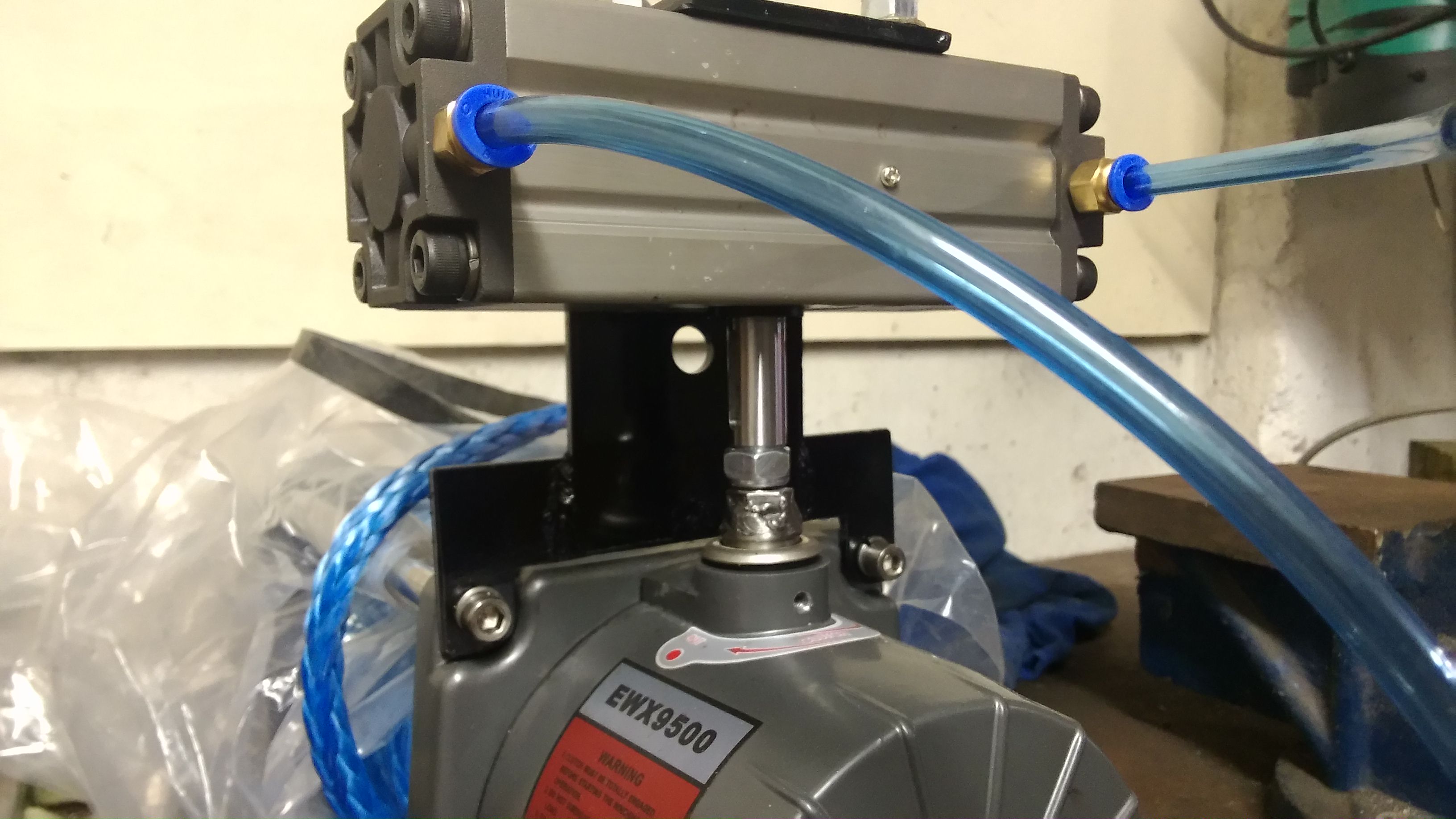 With my winch now mounted in the rear of my tray I needed a way to easily get the cable out and even though the 80:1 ratio on my 9500Q is fast it snags up if the winch rope get pinched it doubles back. I had always intended to run a free-spool. So i found an air actuator that did 180 degrees (that was harder than i thought most do 90) also picked up an air solenoid valve that was a 5/3 which basically has one input and swaps between the two ouputs with 2 exhausts.
