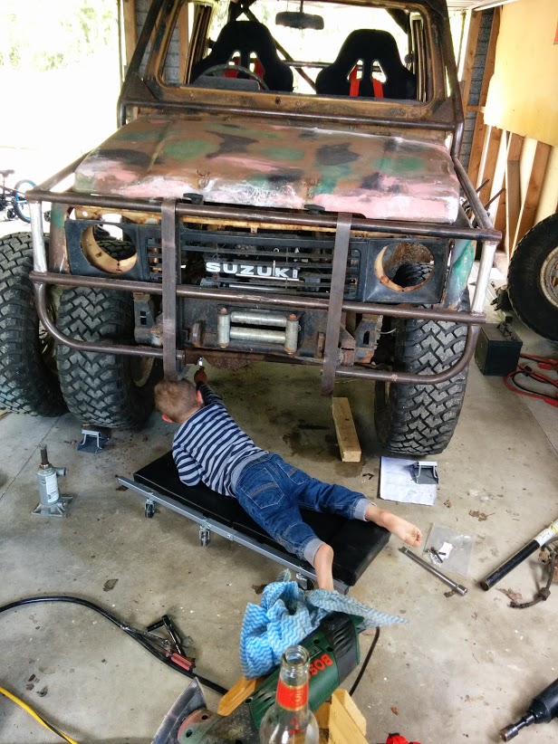 Well after a lot of crap times, a seperation, and having to sell my house n cough up half, the project has found its home in my new much bigger garage. Things are starting to progress, acquired a lot more of parts needed. Got a new radiator to replace the old SJ one mounted in the rear, off a Nissan march of all things. Got some v6 vitara discs and calipers to go on the front do the SJ calipers can find a new home on the rear, and the much needed subaru master cylinder is sitting in the back of my ute ready to go. Got a care package coming from lowrange offroad with extended hoses, manual line lock for temporary parking, and new shifter bushes. Another coming from burlen fuel systems to sort the carb out. Just a matter of getting on and fitting it all up.