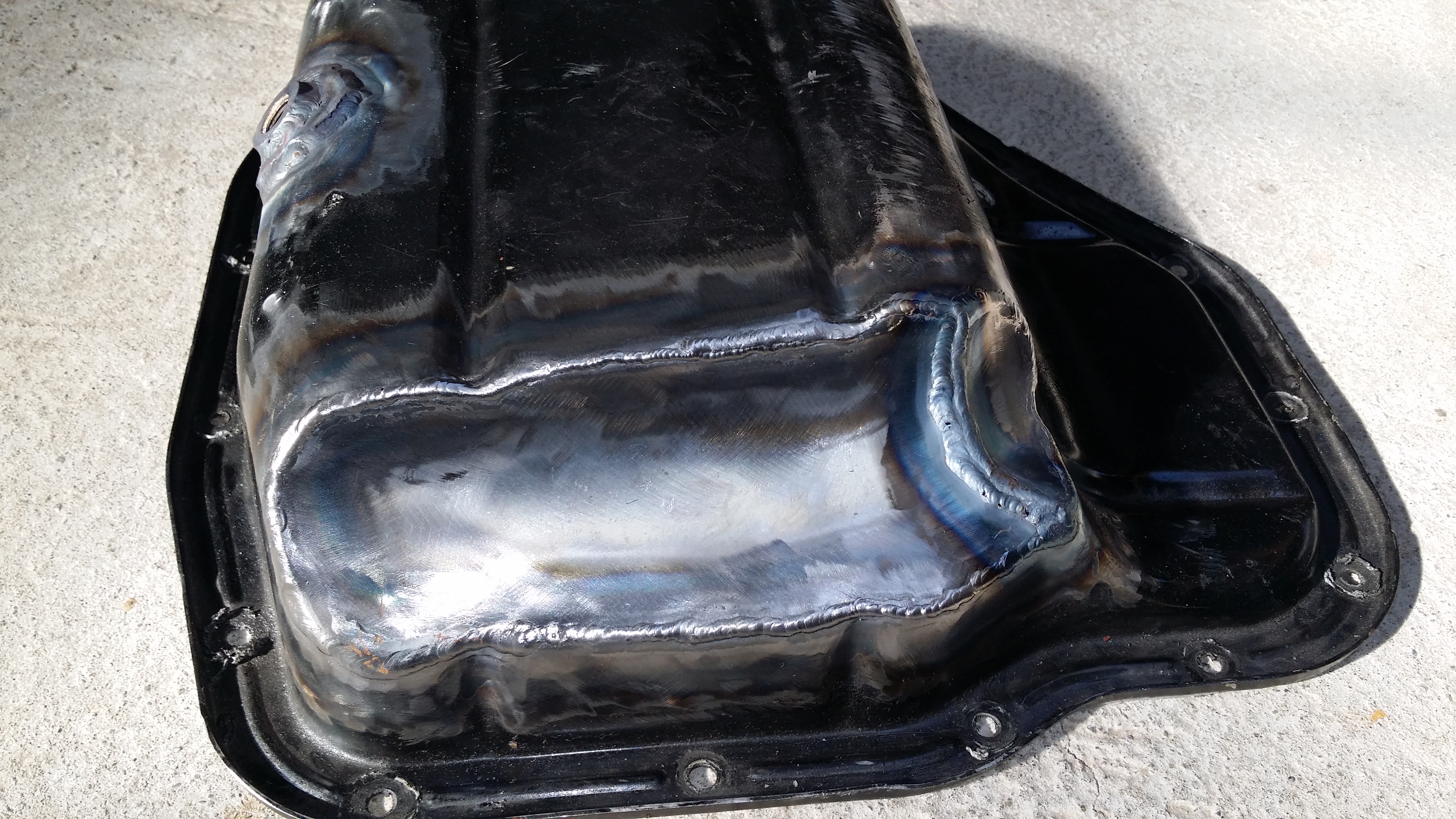Managed to get some time to work on the truck this weekend. First up my sump pan is all notched and finished to clear the diff, and sump bung relocated to make oil changes easy as