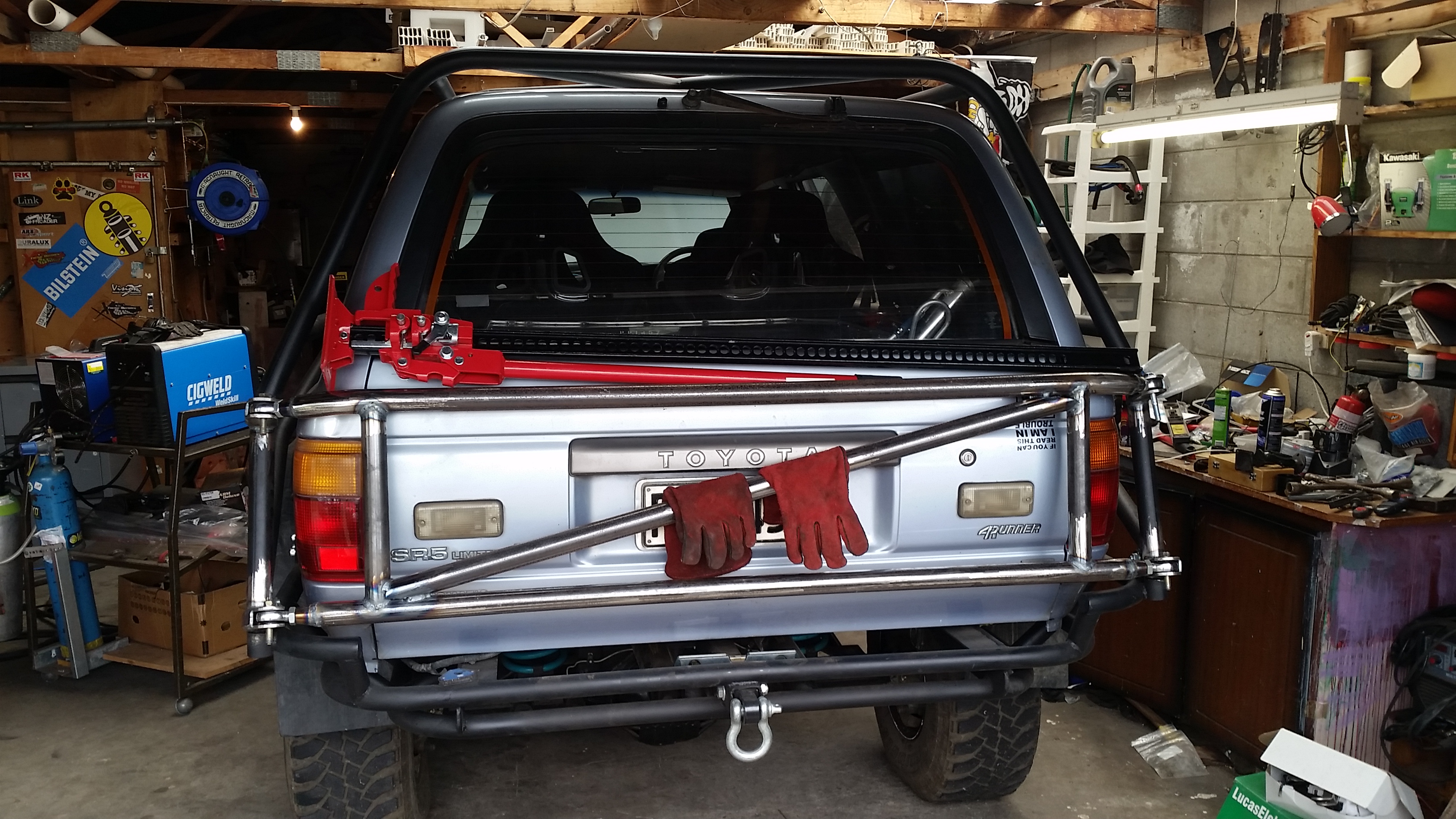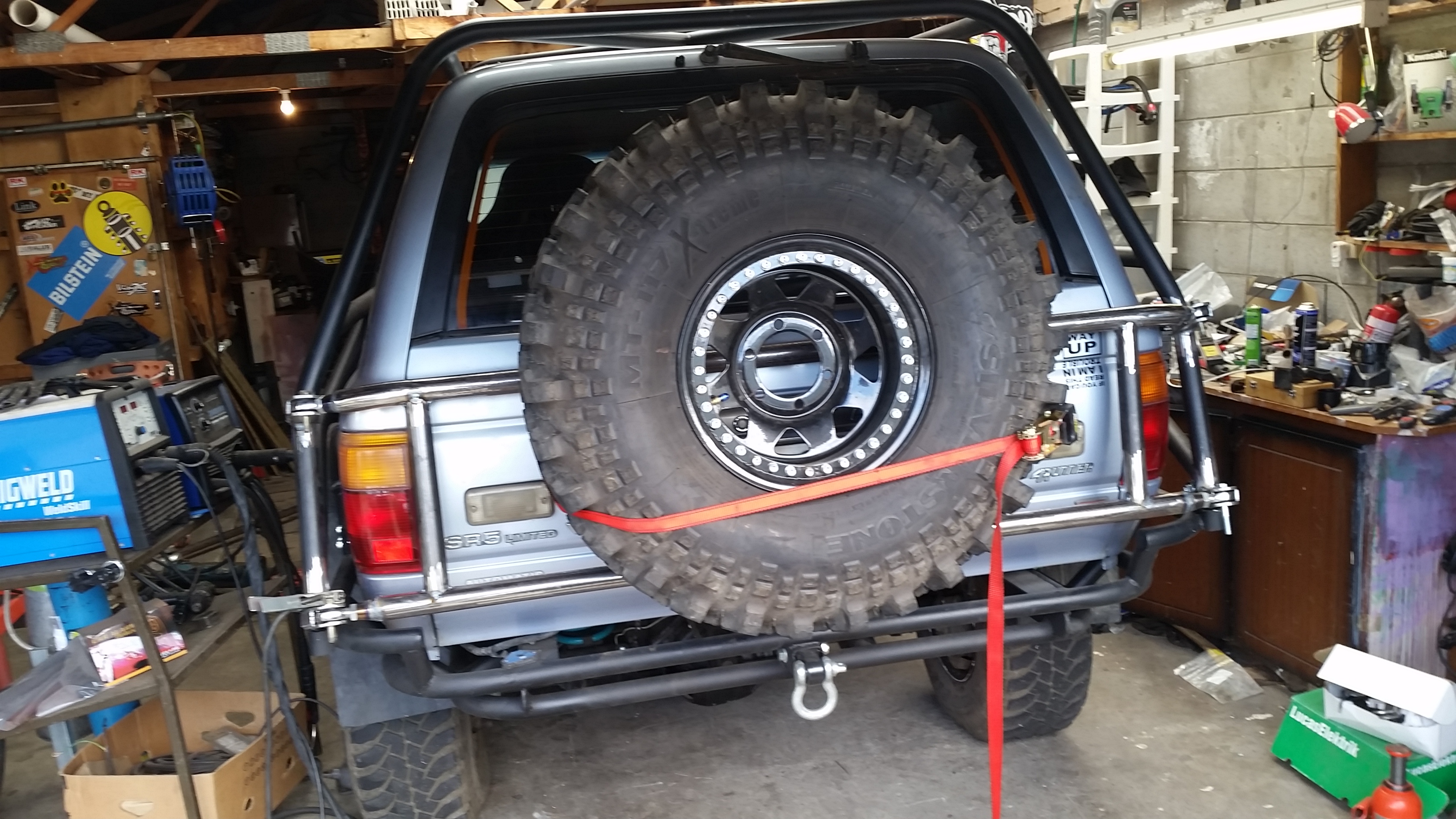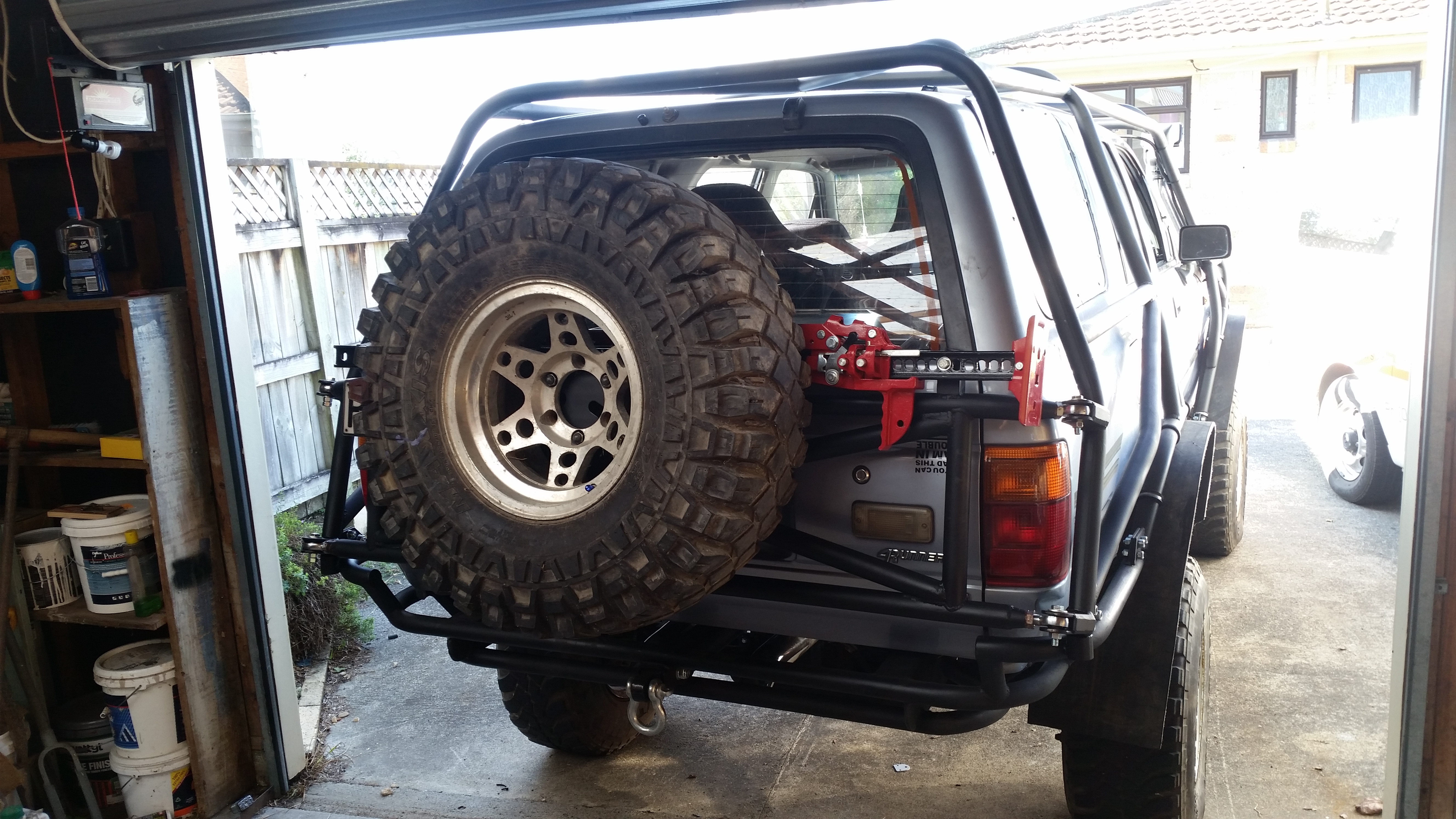 Started making rear frame to mount high lift and my spare tyre that doesn't exist yet..kinda using it to add a small amount of cross brace into the rear cage aswell. Not finished yet..