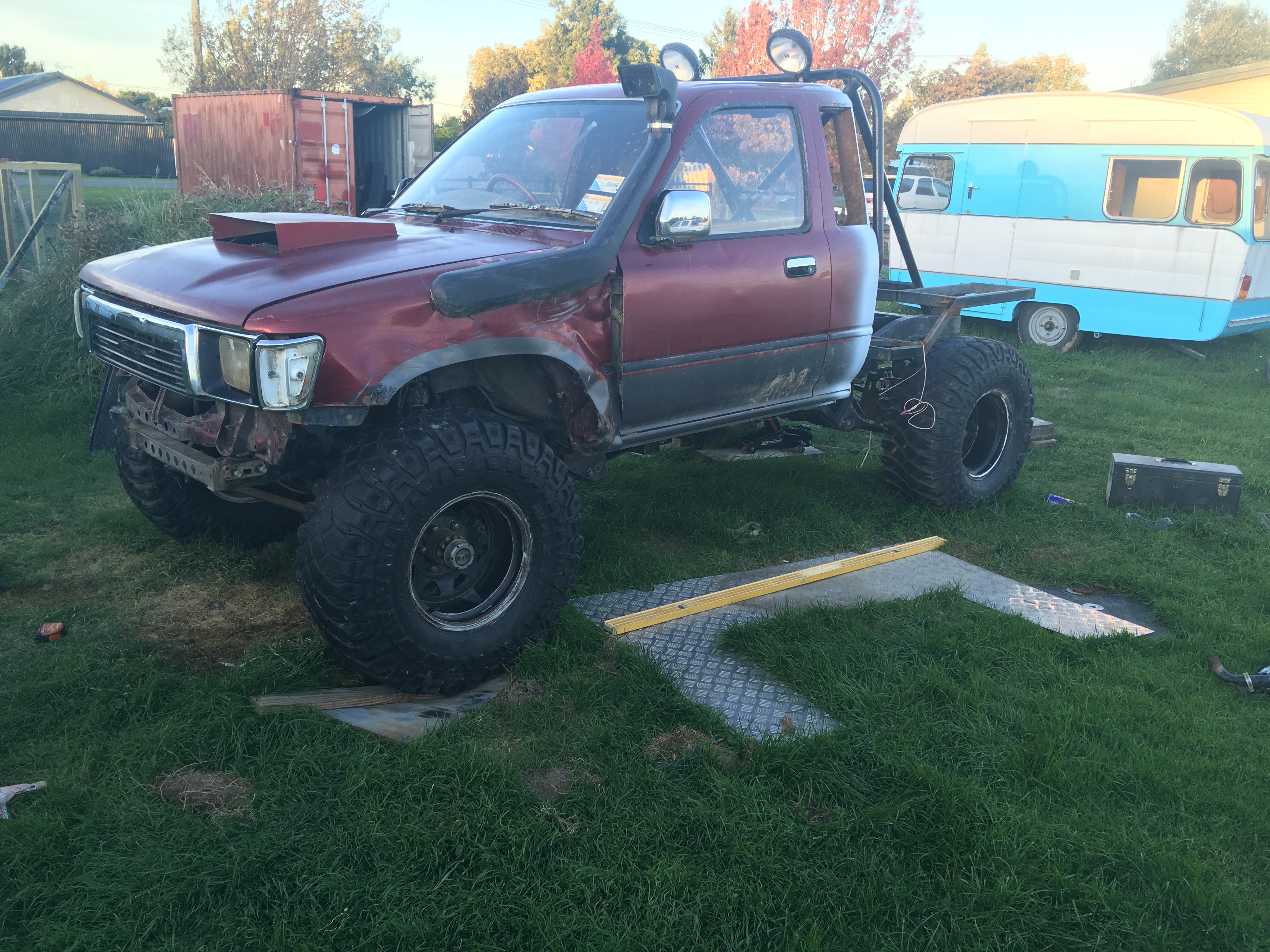 Lowered it back down to standard height. I’ll piece it all back together this weekend and see how the new weight distribution performs then it’s time to tweak shocks & springs.