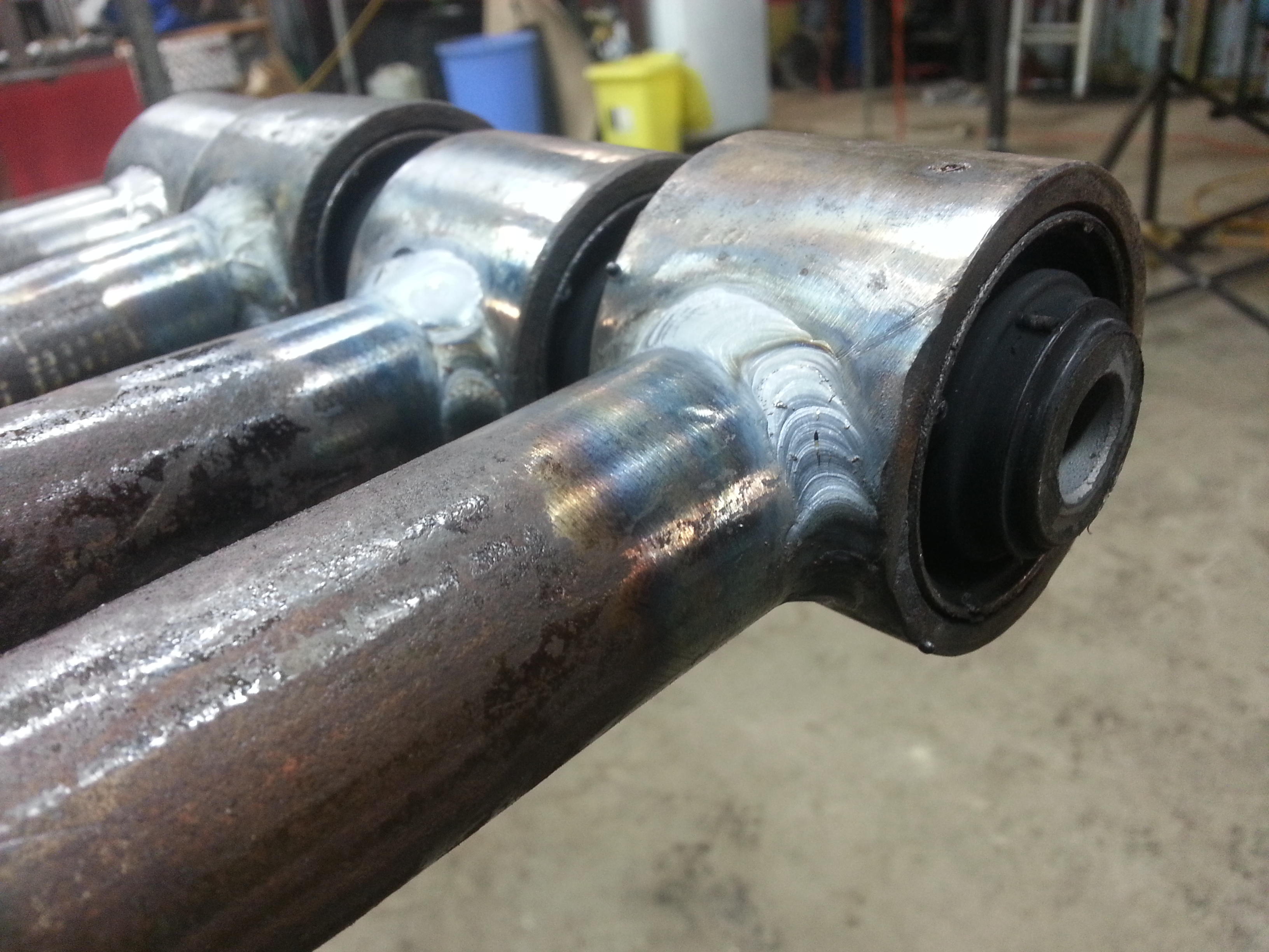 rebuilding the front 3 link. Using Nissan safari trailing arm bushes and schedule 80 pipe.
