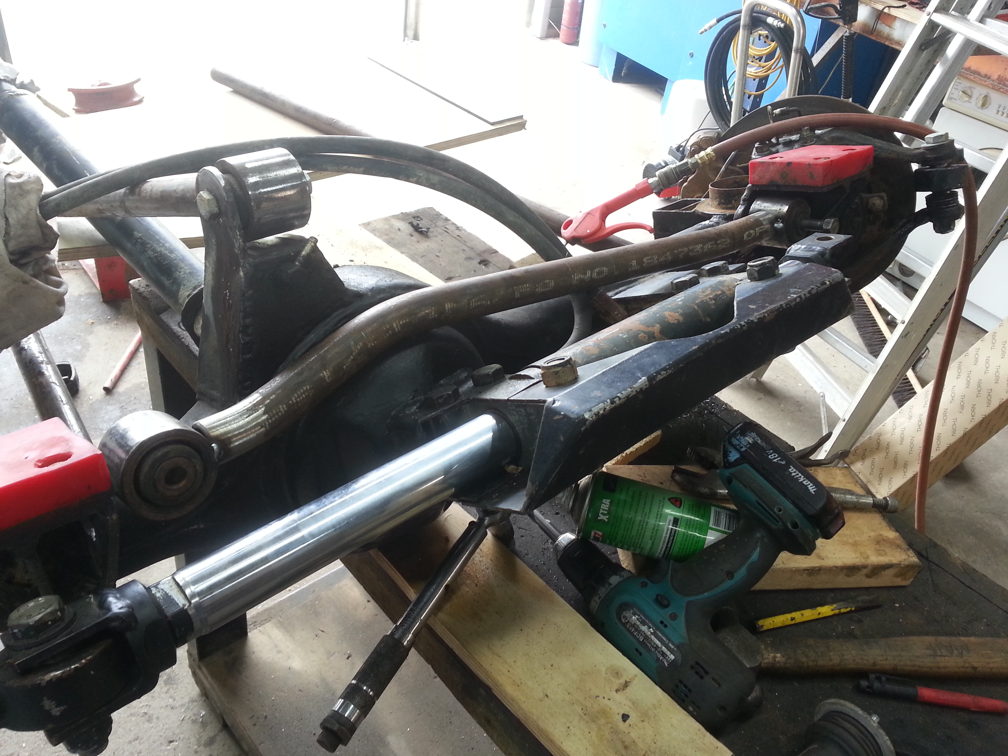This is all the hydro i got off my other project, was told the ram is from a tractor. last pic is my idea of a wheel alignment ha ha.