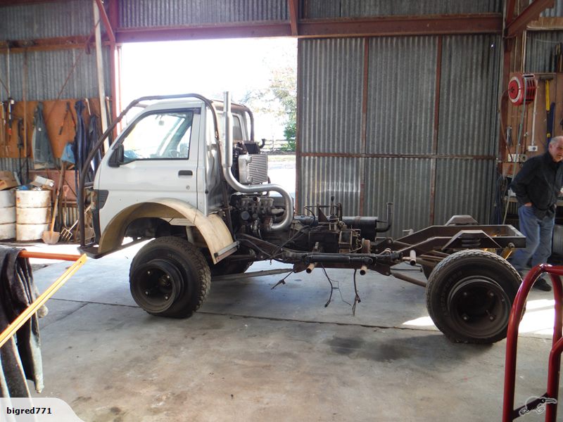 Full custom chassie, 5 link front and 4 link rear, hydro steer and mid mounted ld28 turbo.