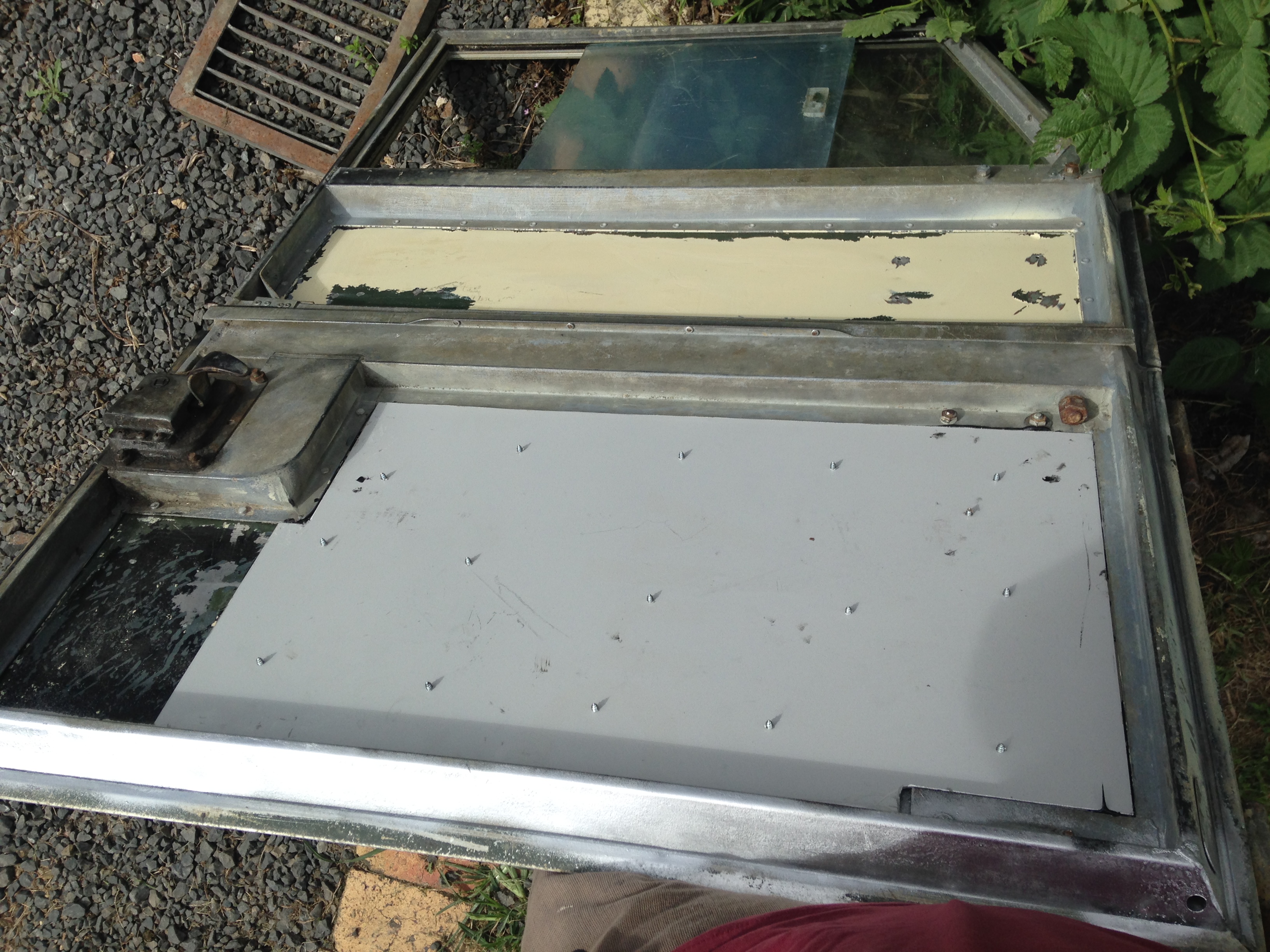 In this case you see both sides of the door skin, so rivets weren't ideal. Tried self tapping screws as an experiment and seems to have worked out ok, the screws came out tonight and the plate stayed tight to the door skin