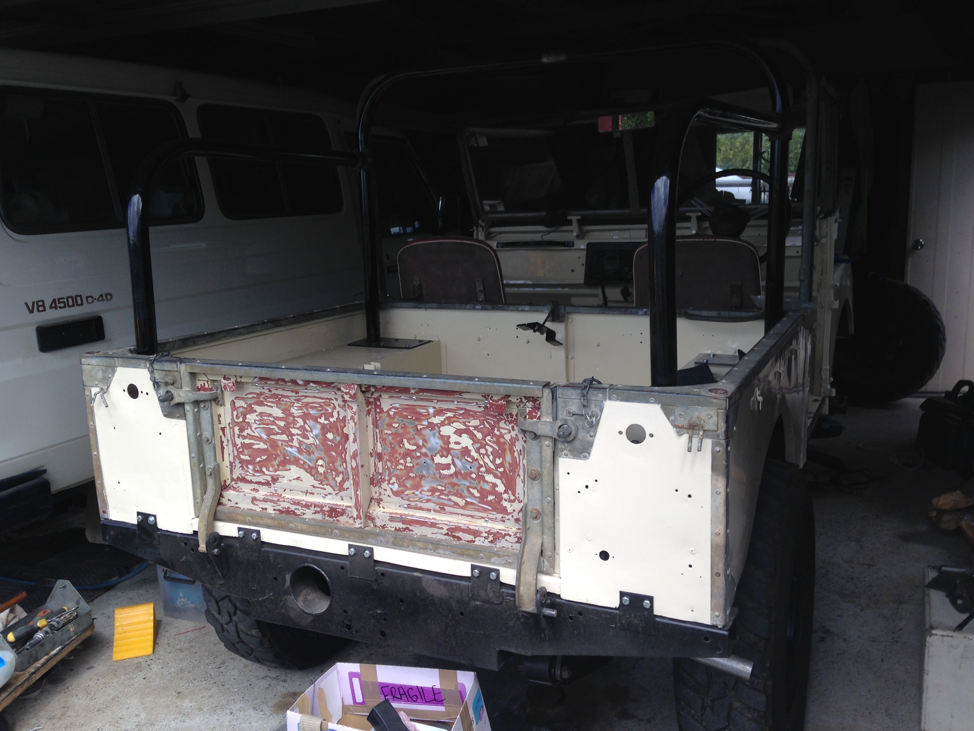 Time to sort out some of the minor issues, wrecked doors, tail gate that doesn't fit the new cross member, bent bonnet etc