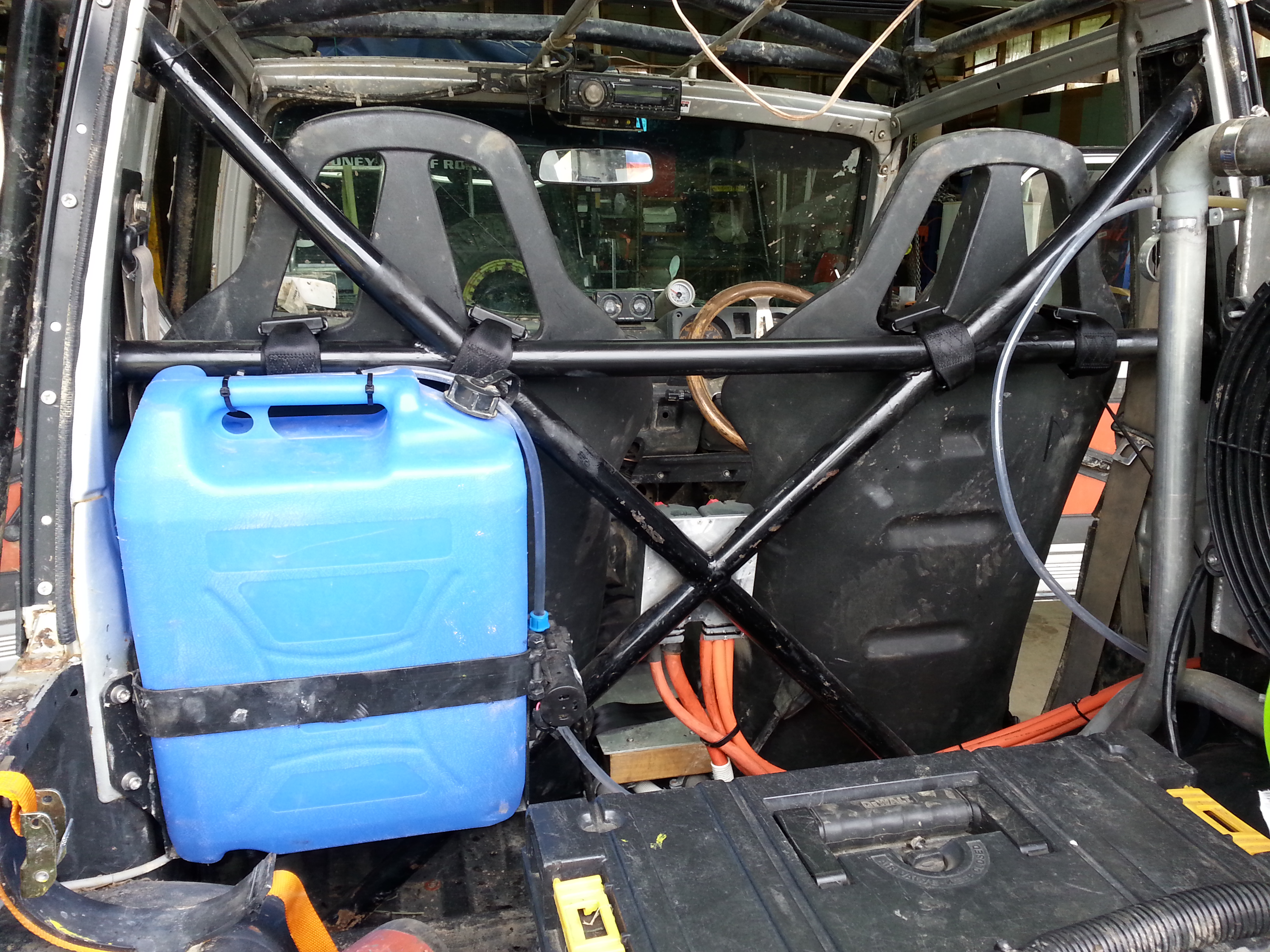 Roll cage cross bar for 4 point harnesses.