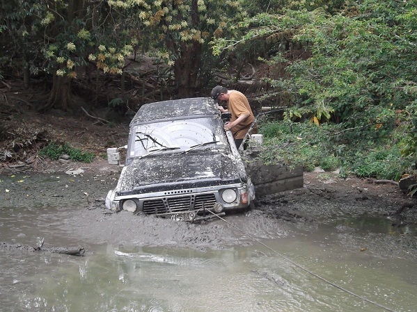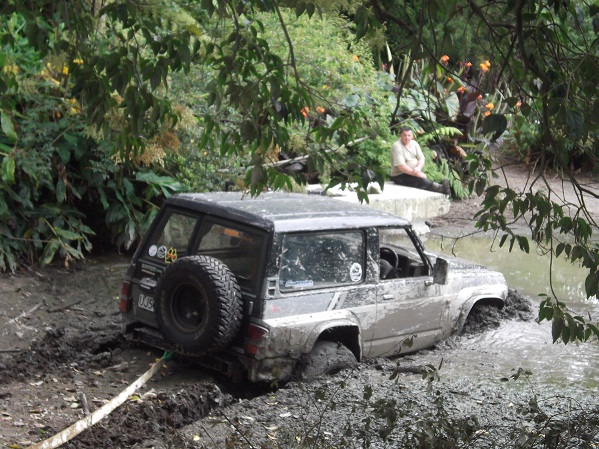 tryed to winch through it but snaped my winch rope,caleb tryed a snatch backwards but no good,so francie had to come to the rescue in his 110 landy