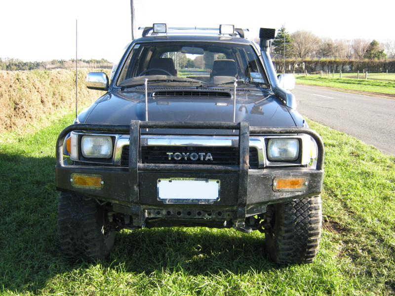 Damn near indestructible front bull bars adapted to fit after the body lift (air tanks behind them FYI)