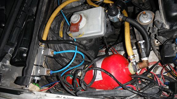 used a 2.5kg fire ex bottle and my brother made me a little alloy block for the 2 locker switchs and the pressure sensor.