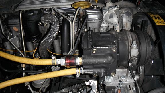 i just put a T junction in the crank case ventilation pipe that returns to the air intake and plumbed it to the inlet on the AC compressor and the outlet to the tank. by passed high/low pressure switches(just have one on the dash) and set the valve on the tank to release a 90 psi.