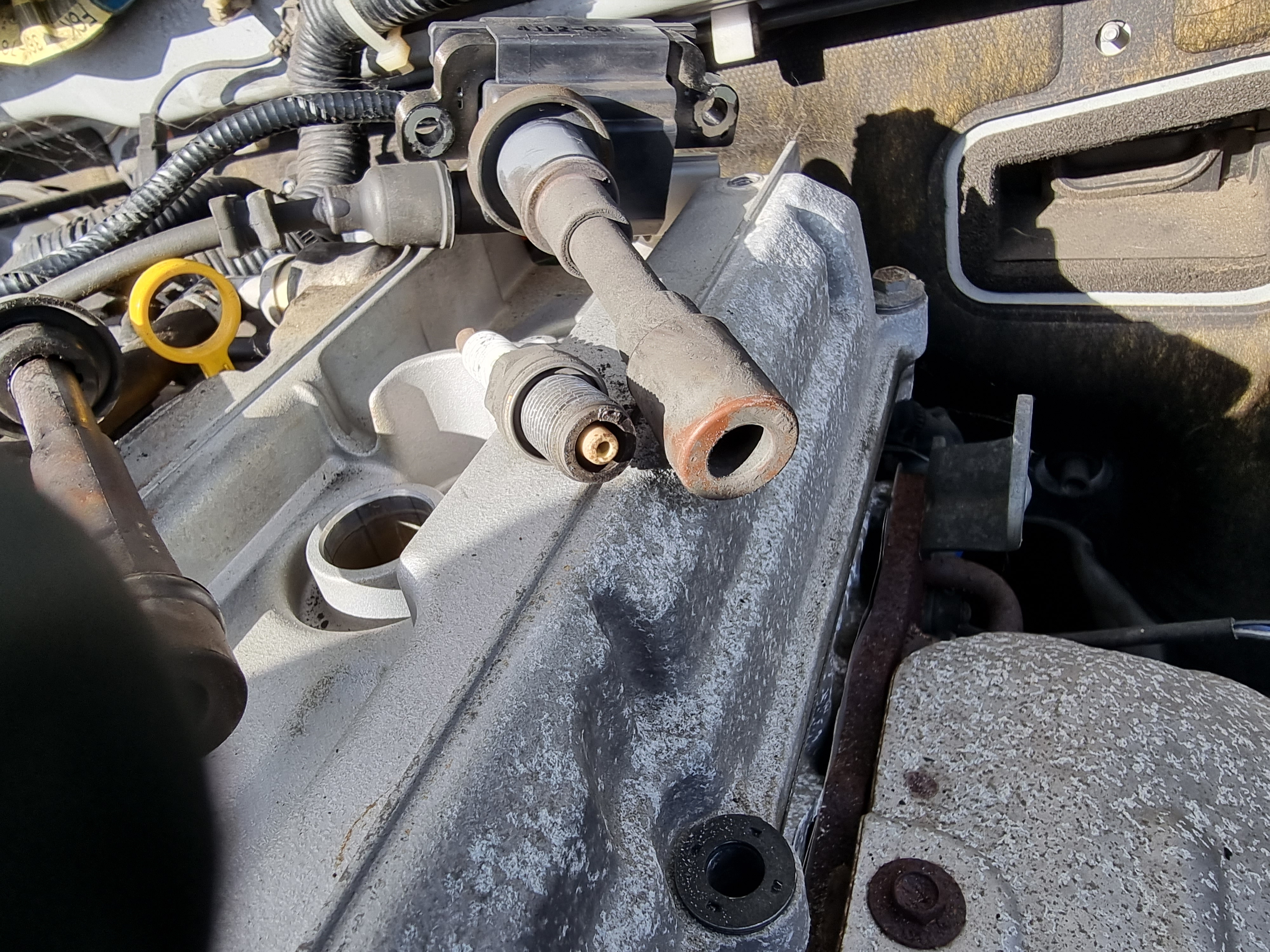 The #4 cylinder has eaten it's spark plug the earth electrode is gone and the center electrode is gone, the spark plug was loose when I removed it and covered in carbon. I haven't removed the engine yet or the head yet so the cause and extent of the damage is unknown at this time. Pictures attached